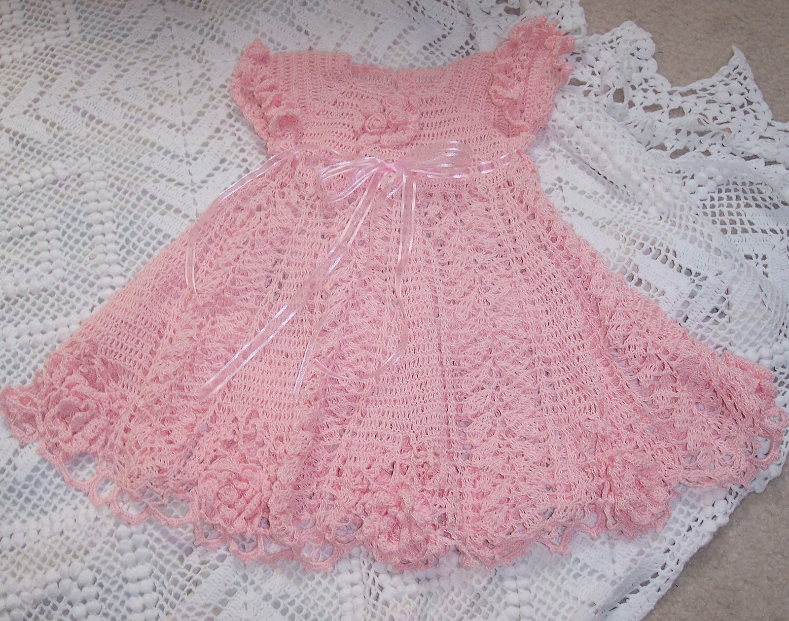 Vestidos em croche ponto folha para bebê